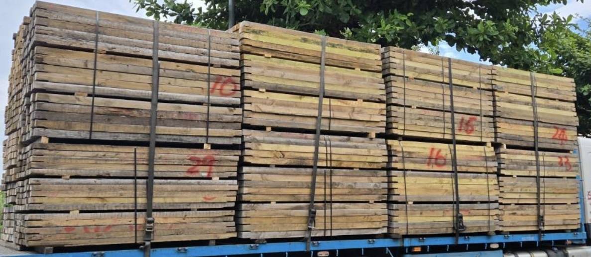 ♻️♻️二手電纜軸封板有做防腐(皆已拔釘整理好同長度,寬度,厚度皆各自打包) 寬度12cm為主,厚度6-7.5cm為主,長度200+-45cm左右為主(左右各有約10×1cm的缺角如照片) 長期有貨可給