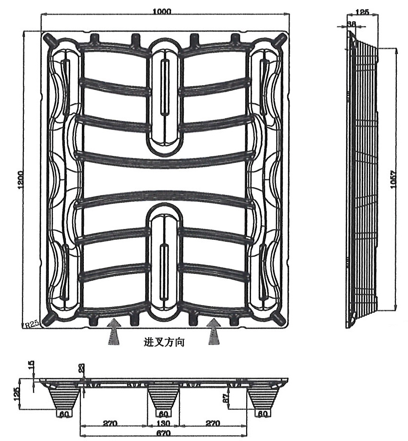 | V-L2-120100-87 | 1200*1000*125 | 2000 | 7000 | 60pcs | 1260pcs | 18±1 | 二叉口 | 兩向 |