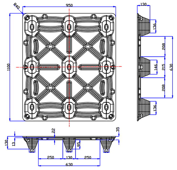 | V-ST4-110095-95 | 1100*950*130 | 2000 | 7000 | 62PCS | 1488pcs | 15±1 | 四叉口 | 四向 | O |
