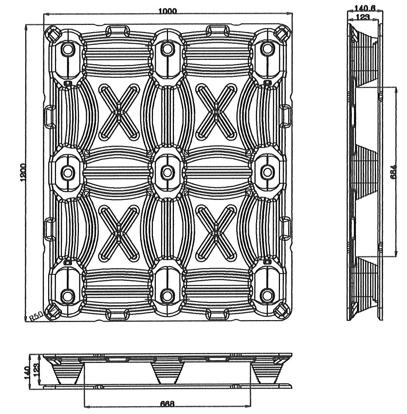 | V-SD4-120100-91 | 1200*1000*140 | 2800 | 9000 | 729組 | 30±1 | 四叉口 | 四向 | O |