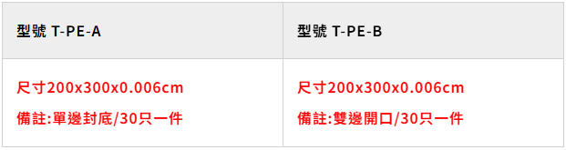 常備PE內袋規格品: