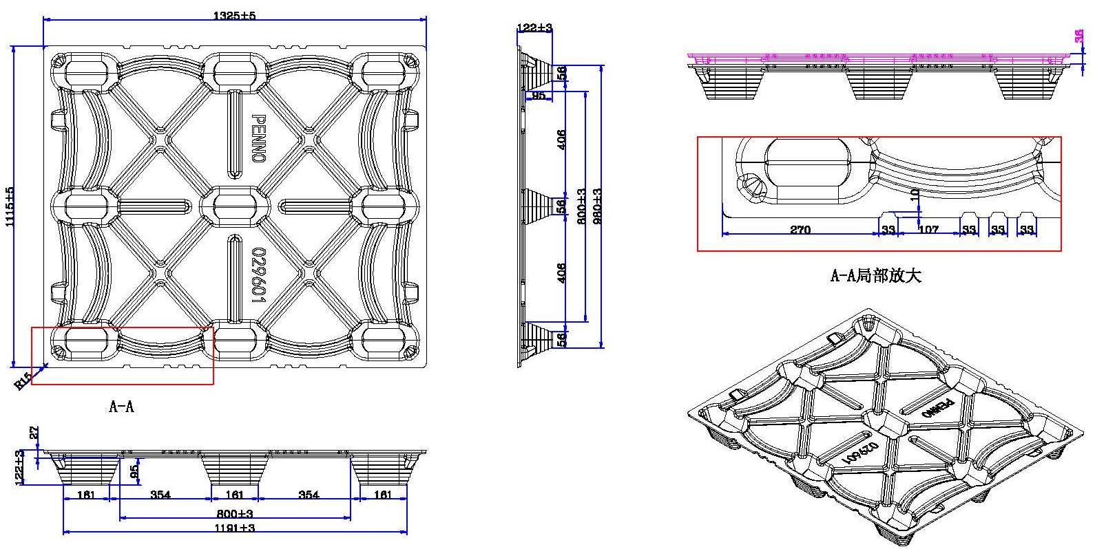 | V-S4-132111-95 | 1325*1115*122 | 1500 | 4500 | 60PCS | 四叉口 | 四向 | O |