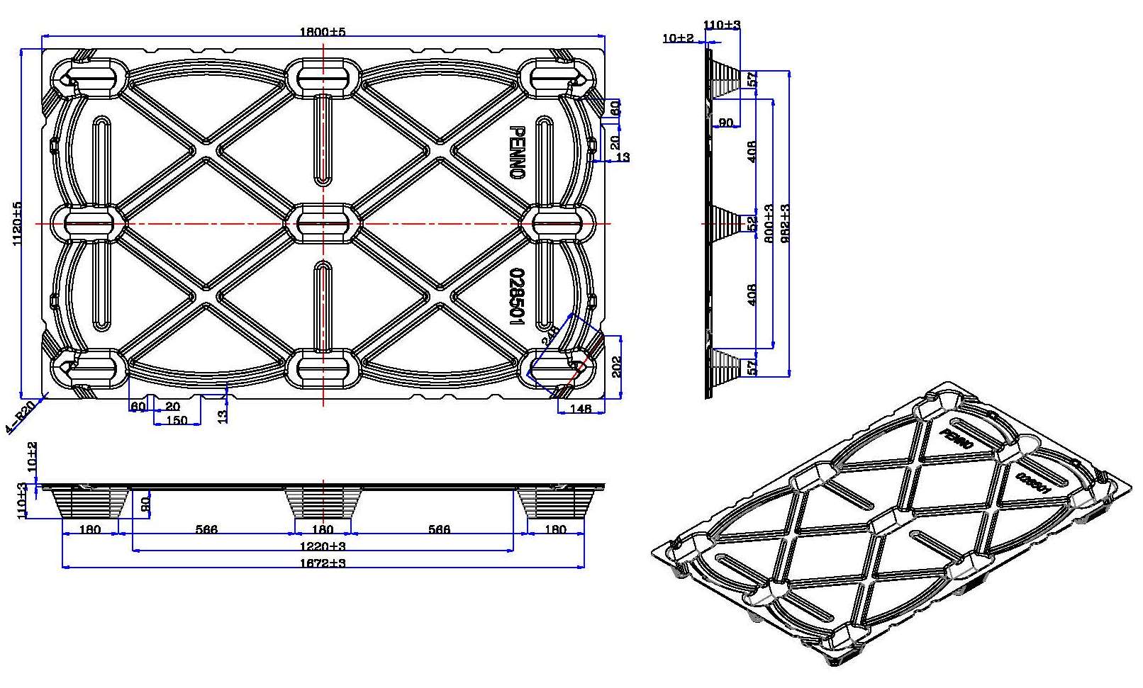 | V-S4-180112-90 | 1800*1120*110 | 1500 | 4500 | 55PCS | 四叉口 | 四向 | O |